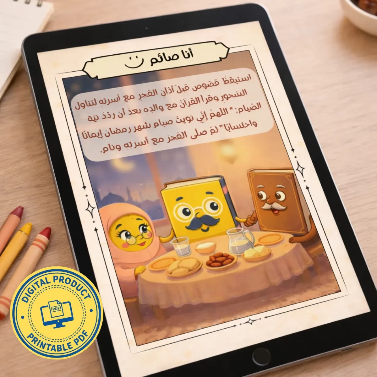 تم تصميم المحتوى بعناية ليناسب الطفل نفسيًا ولغويًا، مع رسومات ناعمة وألوان هادئة تشجّع على التفاعل والهدوء.